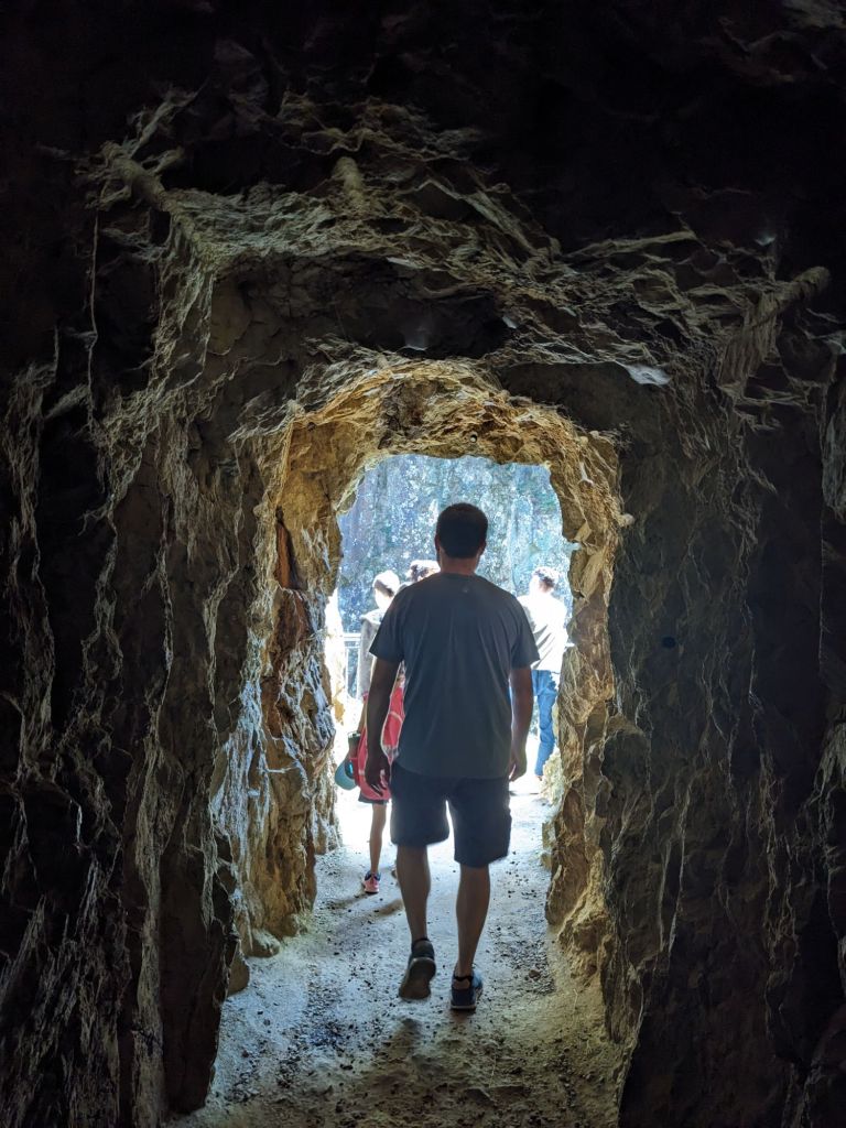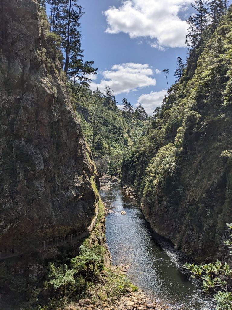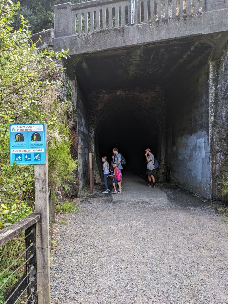 Our first sightseeing expedition away from Auckland was a month ago. Danny was orienting on his job and heard a speaker talk about some cool sights south of us, so he decided we should check it out. I decided to suppress the urge to plan (aka control things), so I let Danny take the reins on this one which meant I hadn’t a clue what we were seeing and might have gotten a little irritable at having to drive almost 2 hours to do some hiking. Aren’t there enough cool things to see closer to us?? But then after we arrived, my tune changed. This place was so cool. A winding canyon formed by a river creating much natural beauty along with gold mining history. At one point it was home to a lucrative gold strike and remnants of those days were scattered about including mining tunnels, building remains, and railways. The landscape reminded me a little bit of Zion National Park. While googling over the beautiful scenery, we got to walk through mining tunnels. They weren’t kidding when they said to bring a torch (aka flashlight). There was also an old railway which used to run through the gorge which was turned into a walkway/cycleway. It was strange and exciting to walk through the dimly lit super long 1km (0.6 miles for you non-metric minded people) railway tunnel through the gorge.