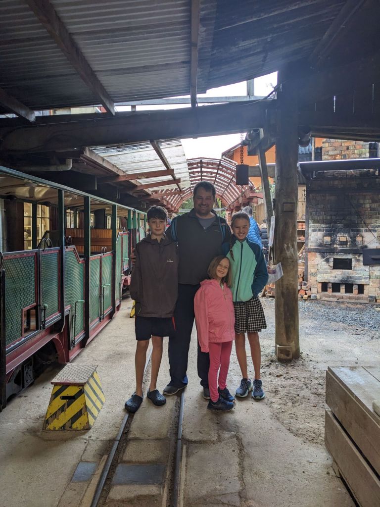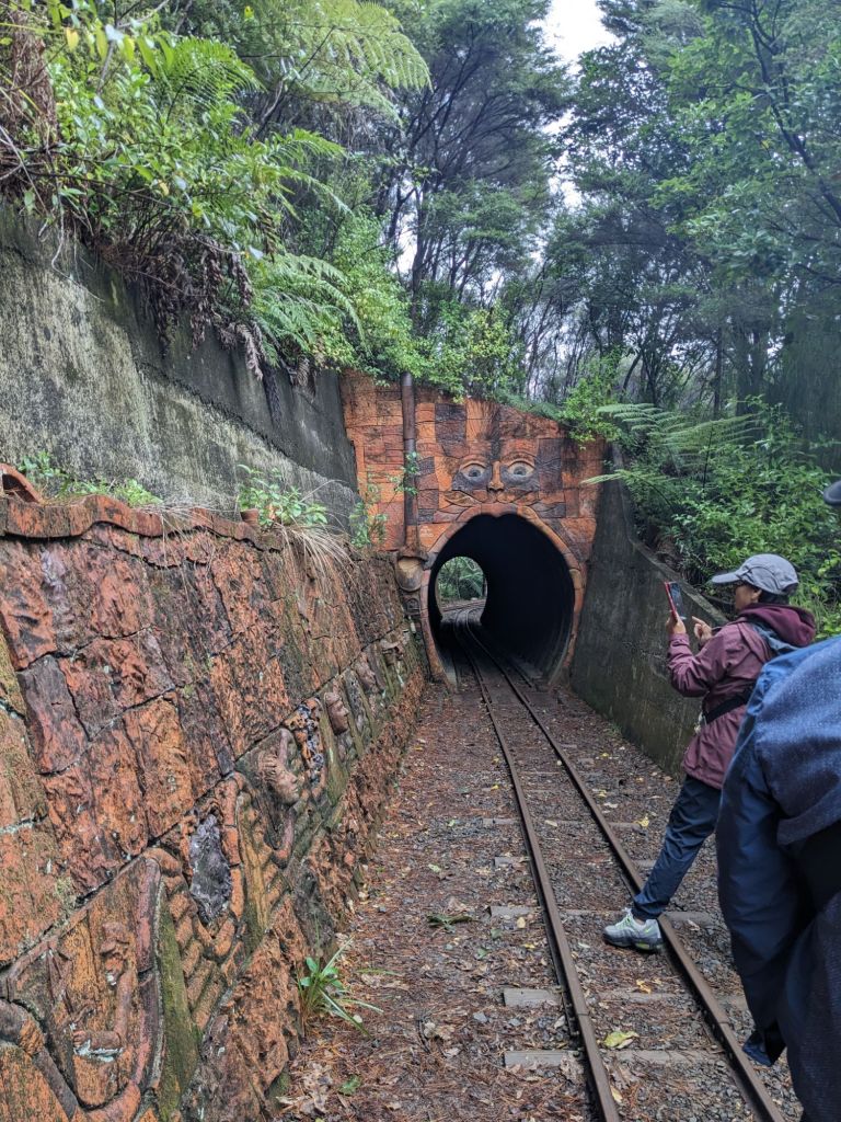 The next day, we checked out Driving Creek Railway and a trail to see Kauri trees. Driving Creek Railway is “New Zealand’s only mountain railway” but didn’t begin as a tourism venture. It was born from one man’s interest in pottery, railways, and conservationism. Barry Brickell was a potter who bought the property in 1961 and originally constructed the railway to transport clay and wood to fire his kiln. His enthusiasm led him to make the railway longer and longer, using rail switchbacks to climb elevations, and constructing tunnels and bridges until he was essentially broke. He then opened up his hobby to tourists as a means of being able to continue his passions. Also, with the help of others, he planted thousands and thousands of native trees on his property. So the attraction is now an hour and 15min ride on the railway surrounded by regenerated native forests, passing unique artistic displays (retaining walls made of glass bottles) and pottery, to the “Eyeful Tower” platform with a beautiful view of the Coromandel. After this, the kids weren’t really interested in more sightseeing but begrudgingly accompanied me on a short walk to see some ancient native Kauri trees. These trees are some of the oldest and largest in the world and unfortunately were nearly cleared away entirely when they were discovered by the settlers to be an excellent source of lumbar and money. At one point in New Zealand history, they were the backbone of its economy. The ones we saw were fully grown and approximately 600 years old. I love ancient giant trees.