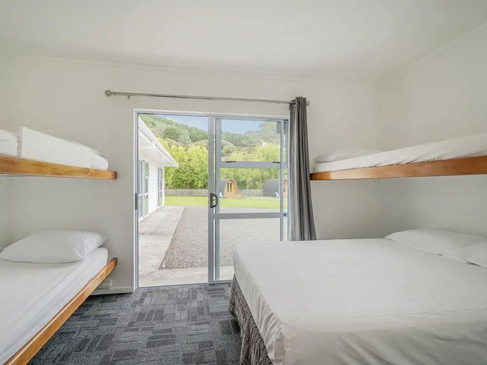 A couple of weekends ago we ventured out for a two night holiday with just the five of us to a place on the North Island called the Coromandel. We weren’t able to leave till after dinner which meant we were driving in the dark for a few hours to reach our destination. The two lane road was continuously tortuous and soon my youngest was complaining of feeling hot followed by a panicked “mom, I think I’m going to be sick.” We pulled off for several minutes, lucky to escape a messy episode. Soon after, Charles had to use the toilet. Just pull off at a gas station you might say, except that’s not really as much of a thing here probably because so many places are remote. Fortune found us as we saw a sign for toilets up ahead and there on the side of the road by itself was one 24-hour toilet. Didn’t know that was a thing here but glad it is. We reached our destination tired but without having to eye any stomach contents. I decided for this trip to try out a budget stay in a Top10 Holiday park. These holiday parks are all around NZ and seem to be part of many a Kiwi family’s holiday experience so I thought we would give it a go. Our room was just big enough for the 5 of us to sleep in- a double bed and 3 bunks and we supplied our own bedding. The shared communal toilets and showers were on the other side of the facility a short walk away and there was also a shared kitchen and dining area.