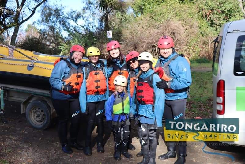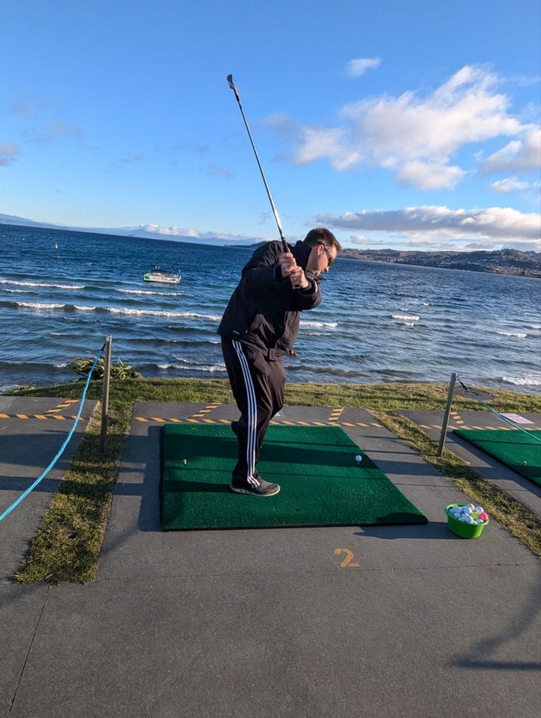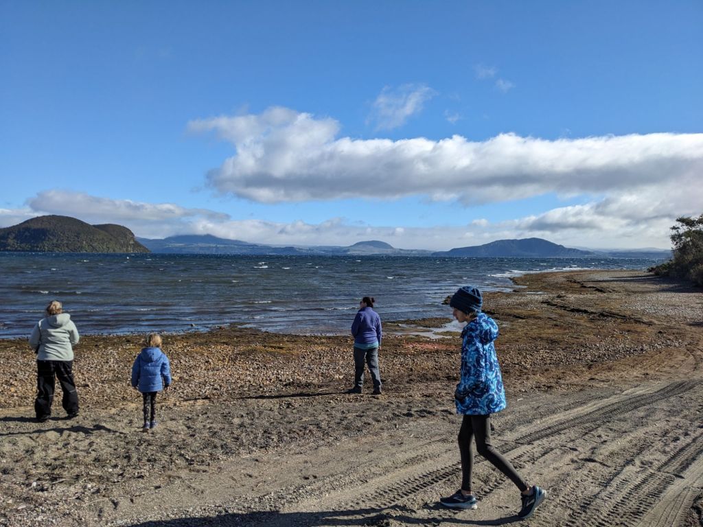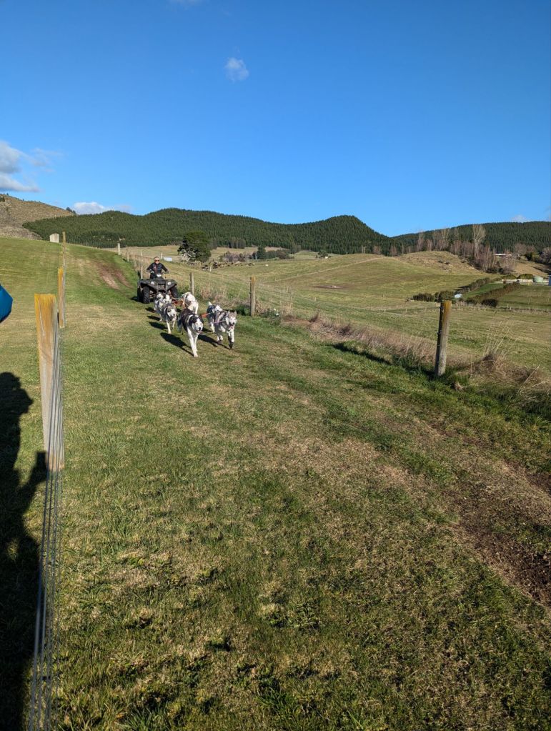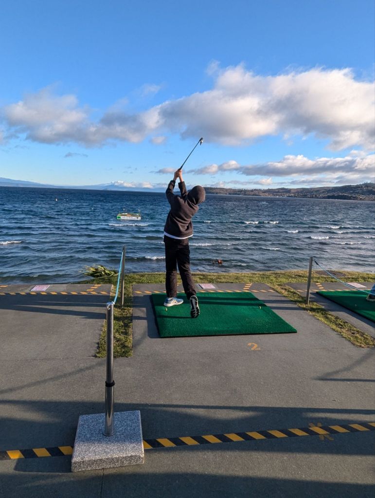 Right after NZ school term finished, we left for Taupo, a town on New Zealand’s largest lake. Taupo is about 3-4 hours south of Auckland on the North Island and a popular vacation spot for Aucklanders.  Here the 7 of us spent a few days partaking in some quintessential NZ activities- white water rafting, jetboating, and hot springs. While we had done jetboating before, we were impressed with boating up to the Huka Falls, arguably New Zealands most visited natural attraction. Not quite on level with Niagara Falls but the display of water power as the wide river becomes quite narrow is impressive and when it comes with a rainbow, near magical. Thankfully our white water rafting trip stayed clear of the falls. Traversing multiple grade 2 rapids on a different river (Tongariro R.) was thrilling enough for most of us I think. Also in Taupo, Charles got his month-long dream smashed when he was unable to win $10,000 by hitting a golf ball onto a platform on the lake (Hole-in-one challenge). For the dog lovers of our group, we took a husky dog sled racing tour with the overriding message-  huskies are amazingly built for sled racing but poorly suited as pets. We all appreciated getting to interact and pet the beautiful and gentle domesticated “wolves.” Lastly, we squeezed in some relaxing time in a natural hot spring pool (DeBretts).
